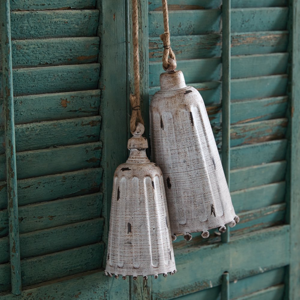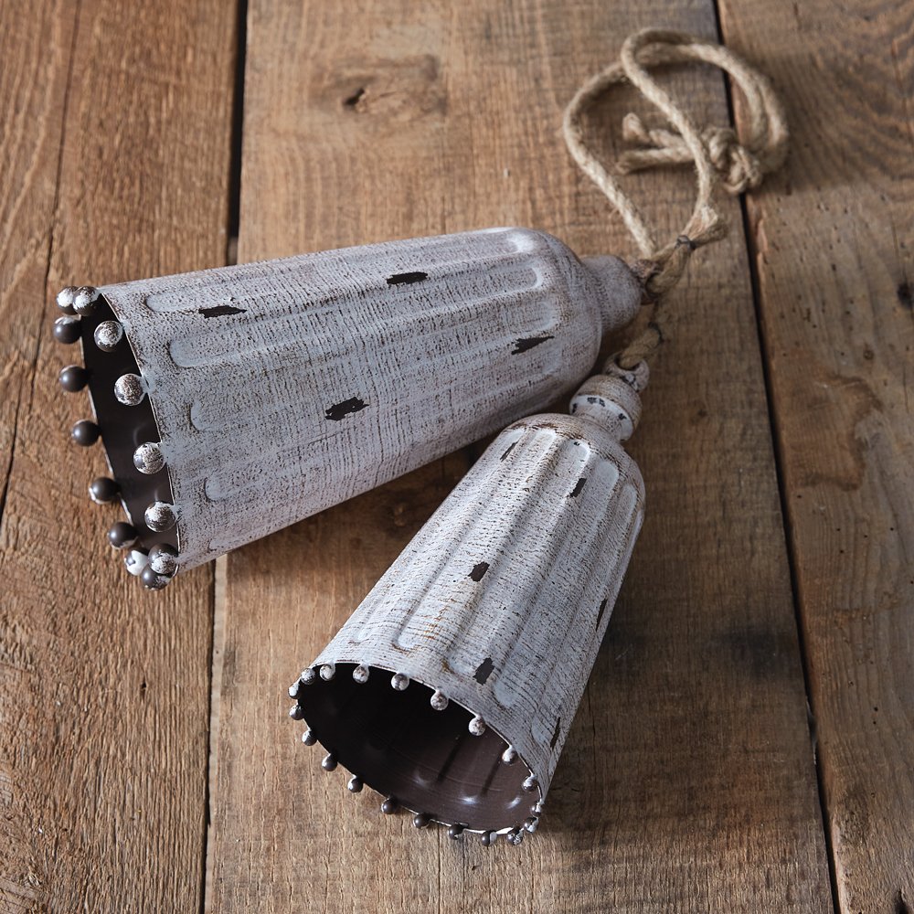 Do you hear what I hear? Christmas bells of course! Our Set of Whitewashed Bells are a rustic and charming touch to Christmas decor or all year long. Jute rope ties them together and each includes a metal clapper. Smallest bell measures 4½'' dia. x 9¼''H.