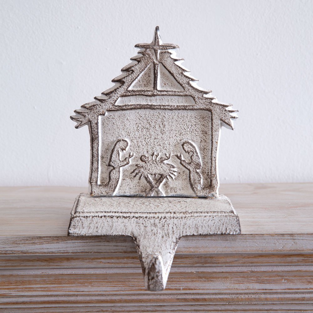 Enhance your holiday decor with this beautifully crafted Cast Iron Nativity Stocking Holder. Made from durable cast iron, this stocking holder features a charming nativity scene that will bring a touch of traditional elegance to your mantle or shelf. With its sturdy construction and intricate detailing, this stocking holder is perfect for hanging all of your family's stockings with ease. Add a touch of festive cheer to your home this holiday season with the Cast Iron Nativity Stocking Holder.