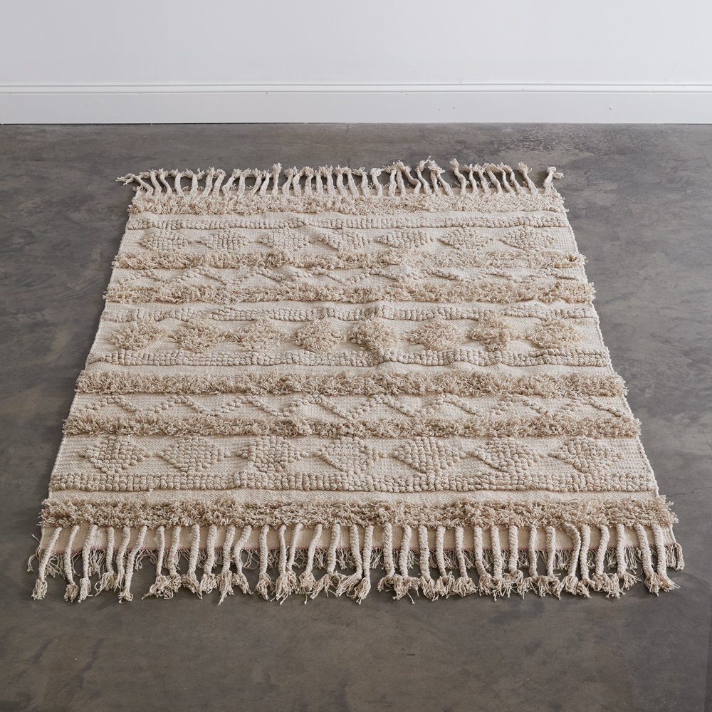 Hand-braided from jute fibers, this 4' x 6' rug features neutral colors that make it a perfect base for any room. Our rugs add an element of warmth to a space that brings together a room.