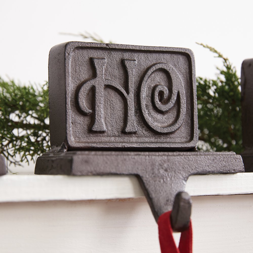 Give your mantel a rustic touch this holiday season with our Set of Three Cast Iron Ho Ho Ho Stocking Holders. Holds a normal sized stocking.