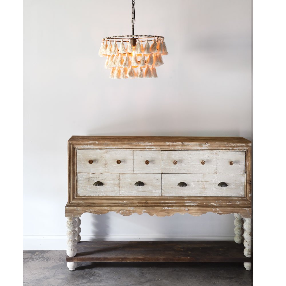 Use our Farrah Tassel Pendant as accent lighting in any room or in your shop. Includes 42'' of chain and a canopy. This pendant lamp is designed to be hardwired: no plug is included. Requires a standard light bulb, not included. 60-watts is the maximum suggested bulb wattage for this item.