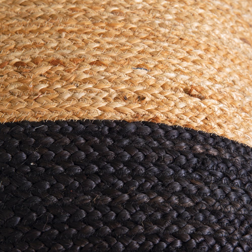 > Natural and Black Jute Floor Pouf